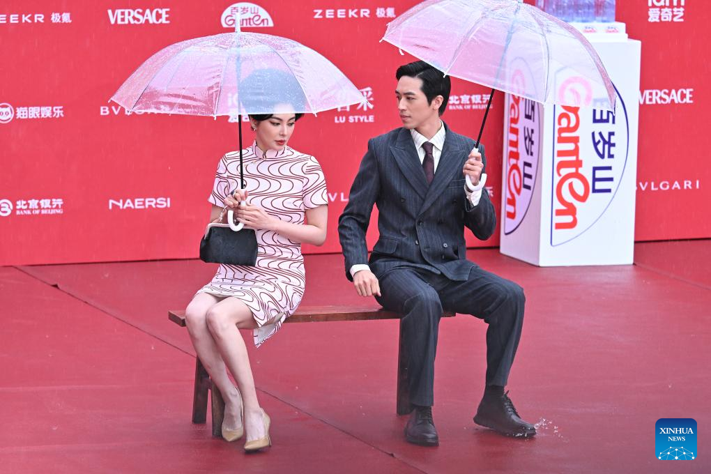 BEIJING, 18 abril, 2025 (Xinhua) -- La actriz Zhang Yuqi y el actor Xu Weizhou son vistos en la alfombra roja del 15° Festival Internacional de Cine de Beijing (BJIFF, por sus siglas en inglés), en Beijing, capital de China, el 18 de abril de 2025. El 15 BJIFF comenzó el viernes en la capital china. (Xinhua/Li Xin)