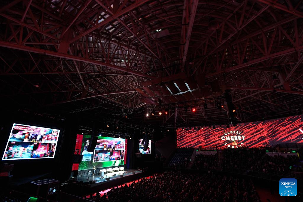 SAN FRANCISCO DE MOSTAZAL, 23 abril, 2025 (Xinhua) -- Imagen del 22 de abril de 2025 de personas participando en la inauguración del Global Cherry Summit en la Gran Arena Monticello, en San Francisco de Mostazal, en la región de O'Higgins, Chile. Chile aumentó sus exportaciones de cerezas en un 51 por ciento en comparación con la temporada anterior, principalmente a China, el mayor comprador del fruto rojo producido en la nación más austral del mundo, según los datos de la asociación Frutas de Chile, correspondientes al periodo frutícola 2024-2025. (Xinhua/Jorge Villegas)