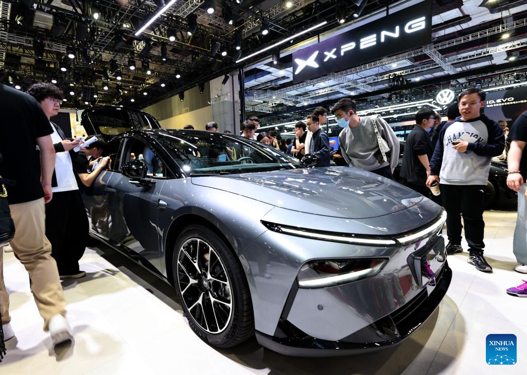 SHANGHAI, 26 abril, 2025 (Xinhua) -- Visitantes observan un P7+ de Xpeng en exhibición en la XXI Exposición Internacional de la Industria Automotriz de Shanghai, en Shanghai, en el este de China, el 26 de abril de 2025. La exposición, también conocida como Auto Shanghai 2025, no solo anticipa las tendencias tecnológicas del mercado automotriz global, sino que también demuestra la fortaleza y la confianza de los fabricantes de automóviles en ascenso de China frente a los gigantes globales consolidados. (Xinhua/Fang Zhe)