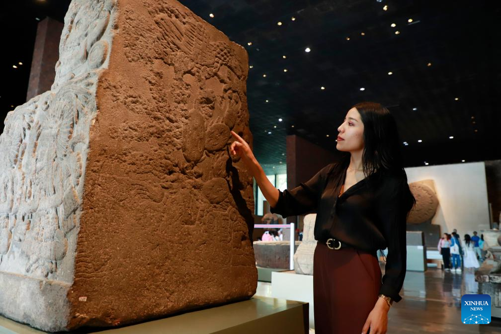 CIUDAD DE MEXICO, 18 mayo, 2025 (Xinhua) -- Imagen del 15 de mayo de 2025 de una trabajadora presentando una exposición en el Museo Nacional de Antropología, en la Ciudad de México, capital de México. El Museo Nacional de Antropología es uno de los museos más grandes y populares de México, donde se exhibe la herencia cultural de México desde tiempos prehistóricos. El Día Internacional de los Museos se celebra el 18 de mayo de cada año. (Xinhua/Pool Contreras)