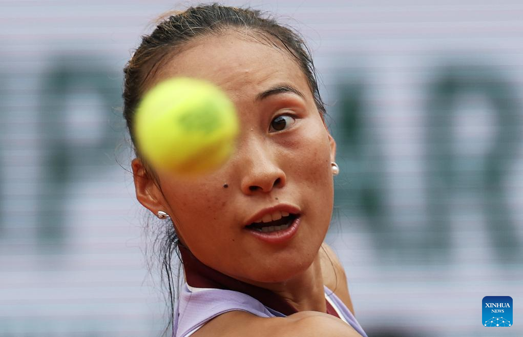 PARIS, 28 mayo, 2025 (Xinhua) -- Zheng Qinwen devuelve la pelota durante el partido de segunda ronda de individuales femeninos entre Zheng Qinwen, de China, y Emiliana Arango, de Colombia, en el torneo de tenis Abierto de Francia, en Roland Garros, en París, Francia, el 28 de mayo de 2025. (Xinhua/Gao Jing)