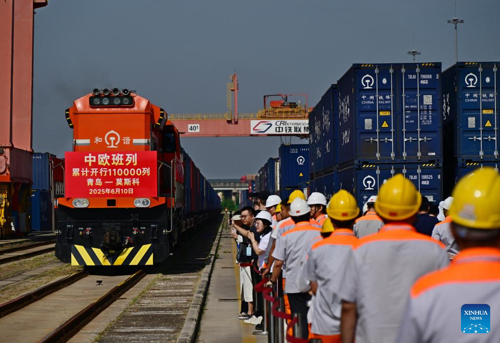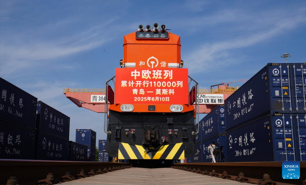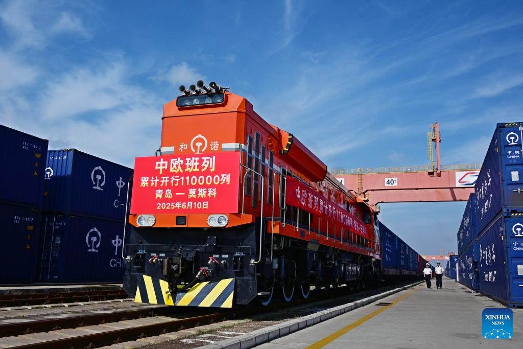 JINAN, 10 jun (Xinhua) -- El tren de carga China-Europa número 110.000 partió hoy martes por la mañana desde la ciudad de Qingdao, en la provincia oriental china de Shandong, marcando un hito en el desarrollo de alta calidad de este servicio.
