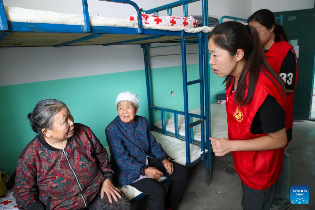 YUZHONG, 9 agosto, 2025 (Xinhua) -- Voluntarias (d) se comunican con los aldeanas en una escuela convertida en un sitio de reasentamiento temporal, en el municipio de Gaoya del condado de Yuzhong, en la ciudad de Lanzhou, en la provincia de Gansu, en el noroeste de China, el 9 de agosto de 2025. El sitio de reasentamiento temporal ha recibido a más de 170 habitantes de la aldea de Maliantan, proporcionando dormitorios, ropa de cama, alimentos, agua potable, medicamentos y otros artículos de primera necesidad para apoyar la vida de los aldeanos afectados por las inundaciones. Las labores de rescate siguen en marcha luego de que lluvias fuertes y continuas provocaran torrentes de montaña en el condado de Yuzhong. Un total de 9.828 habitantes de Yuzhong han sido reubicados en zonas seguras y 443 personas de las que quedaron atrapadas han sido rescatadas, de acuerdo con una conferencia de prensa ofrecida por el Gobierno provincial el viernes por la noche. (Xinhua/Lang Bingbing)