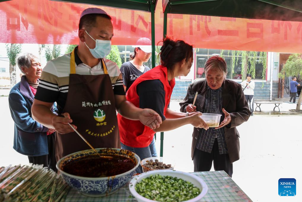 YUZHONG, 9 agosto, 2025 (Xinhua) -- Un voluntario sirve fideos con carne de cortesía en una escuela convertida en un sitio de reasentamiento temporal, en el municipio de Gaoya del condado de Yuzhong, en la ciudad de Lanzhou, en la provincia de Gansu, en el noroeste de China, el 9 de agosto de 2025. El sitio de reasentamiento temporal ha recibido a más de 170 habitantes de la aldea de Maliantan, proporcionando dormitorios, ropa de cama, alimentos, agua potable, medicamentos y otros artículos de primera necesidad para apoyar la vida de los aldeanos afectados por las inundaciones. Las labores de rescate siguen en marcha luego de que lluvias fuertes y continuas provocaran torrentes de montaña en el condado de Yuzhong. Un total de 9.828 habitantes de Yuzhong han sido reubicados en zonas seguras y 443 personas de las que quedaron atrapadas han sido rescatadas, de acuerdo con una conferencia de prensa ofrecida por el Gobierno provincial el viernes por la noche. (Xinhua/Lang Bingbing)