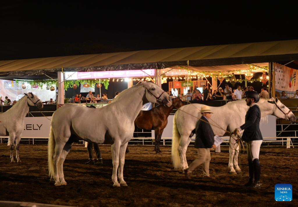 Imagen del 10 de agosto de 2025 de ejemplares equinos exhibidos durante la Feria Ganadera Agostina Internacional Managua 2025, en Managua, capital de Nicaragua. La Feria Ganadera Agostina Internacional Managua 2025 que concluyó el domingo conjugó la producción ganadera, identidad y entrenamiento para las familias visitantes, y aportó al dinamismo económico en Nicaragua. (Xinhua/Noelia Aráuz)