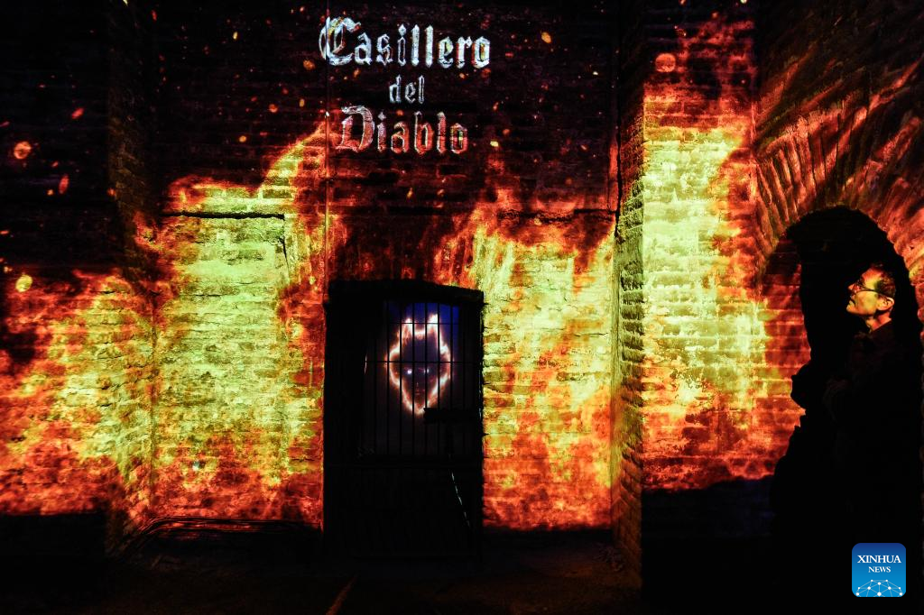 PIRQUE, Chile, 12 ago (Xinhua) -- Divisar una imponente escultura que recrea la portentosa cordillera de Los Andes, adivinar los olores asociados al maridaje o vivir una experiencia inmersiva para conocer el "diabólico" mito de una viña, son parte de los recorridos que Chile ofrece para que sus visitantes conozcan el origen del vino, una experiencia catalogada de nivel mundial en el enoturismo.