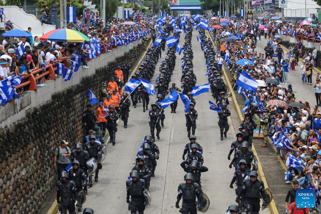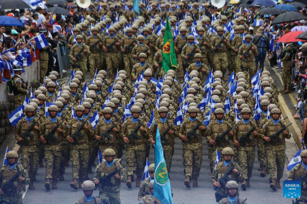 SAN SALVADOR, 15 sep (Xinhua) -- Miles de salvadoreños colmaron hoy lunes las calles de San Salvador, la capital, para conmemorar los 204 años de independencia de Centroamérica de España, en un desfile cívico militar que, pese a las lluvias nocturnas, inició puntualmente a las 8:00 hora local con un ambiente de música, color y orgullo nacional.