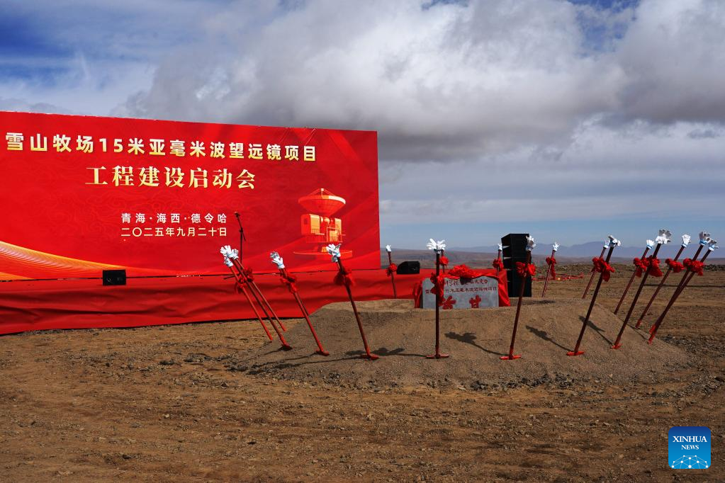 Imagen del 20 de septiembre de 2025 del sitio de lanzamiento de la construcción de un nuevo proyecto de observación astronómica a gran escala, el telescopio submilimétrico Xue-shan-mu-chang de 15 metros (XSMT), en Delingha, en la provincia de Qinghai, en el noroeste de China. China inició el sábado la construcción de un nuevo proyecto de observación astronómica a gran escala, el telescopio submilimétrico Xue-shan-mu-chang de 15 metros (XSMT). (Xinhua/Chen Jie)