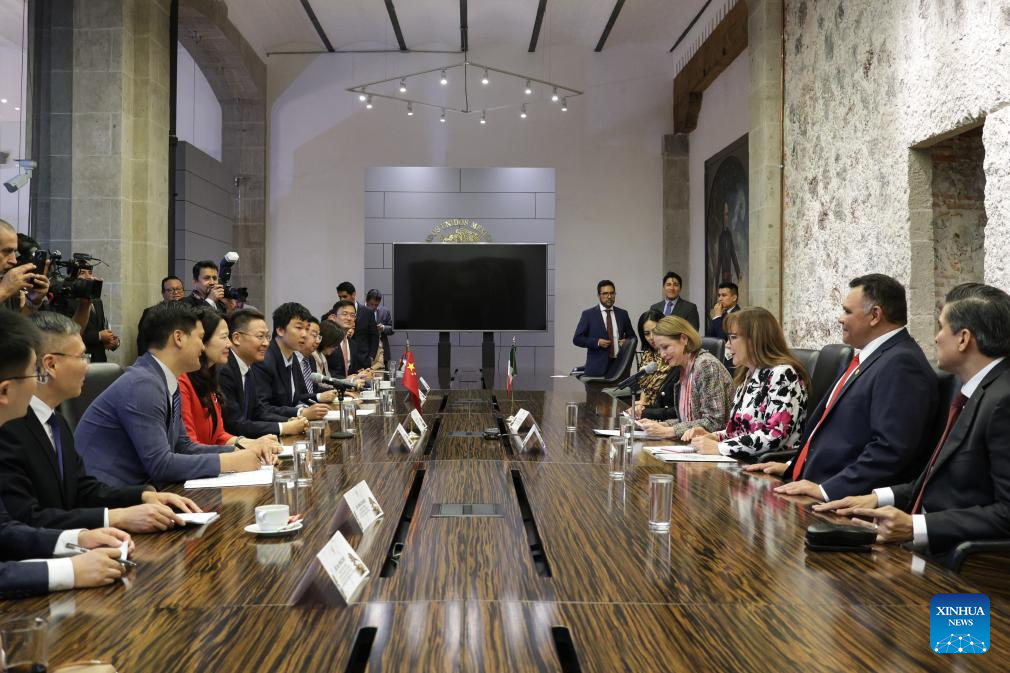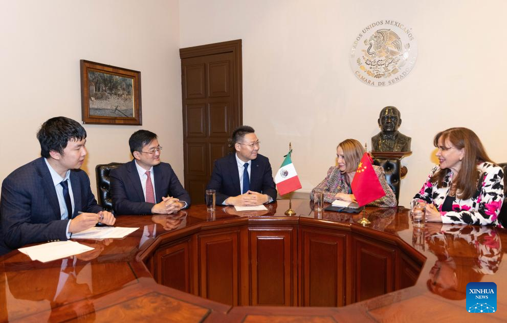 Imagen del 23 de septiembre de 2025 del embajador de China en México, Chen Daojiang (3-i), reuniéndose con la presidenta de la Mesa Directiva del Senado mexicano, Laura Itzel Castillo (2-d), en la antigua Casona de Xicoténcatl, en la Ciudad de México, capital de México. Políticos, diplomáticos, académicos, empresarios y comunicadores de México y China evidenciaron el martes en el Senado mexicano el fortalecimiento del intercambio cultural y artístico entre China y México, calificándolo como una de las más enriquecedoras formas de diplomacia. (Xinhua/Li Mengxin)