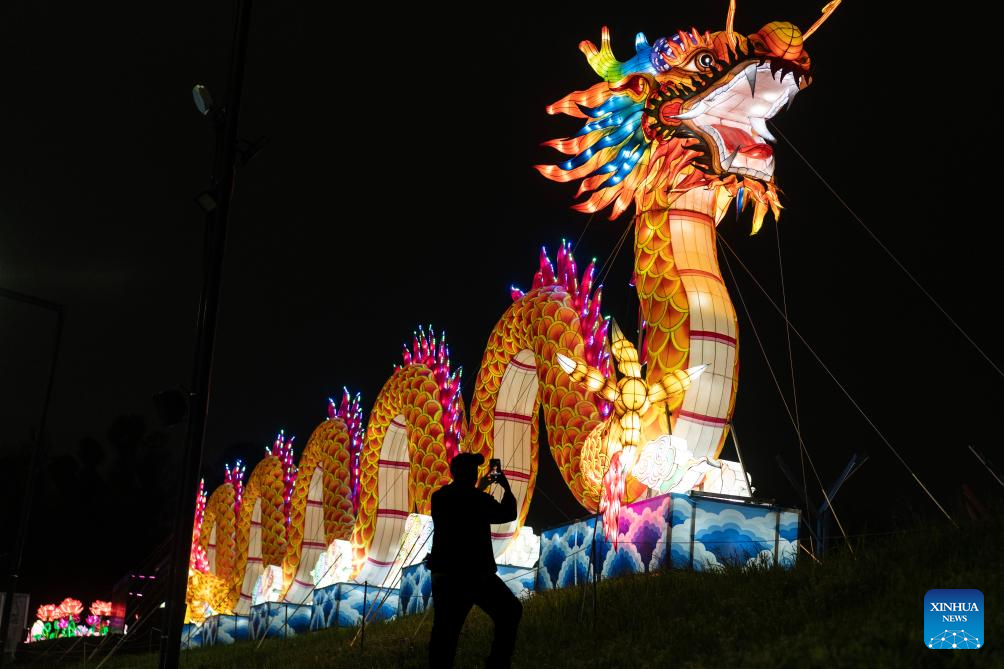 BUENOS AIRES, 27 septiembre, 2025 (Xinhua) -- Imagen del 26 de septiembre de 2025 de un hombre tomando una fotografía de una escultura iluminada durante la feria de luces tradicionales chinas Tianfu Festival, en el predio ferial Tecnópolis, en la localidad de Villa Martelli, en la periferia noroeste de Buenos Aires, Argentina. El reconocido festival de linternas chinas Tianfu, una atractiva experiencia multisensorial basada en la cultura de China, fue inaugurado en Argentina, llenando de luz y color las noches primaverales en el país sudamericano. (Xinhua/Martín Zabala)