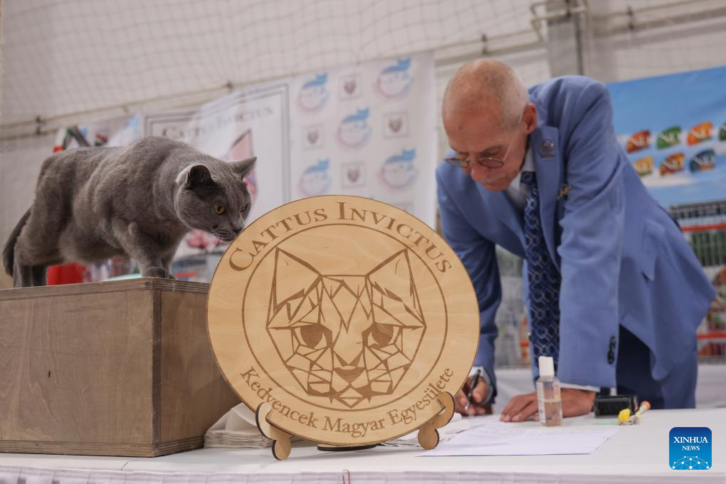 BUDAPEST, 29 septiembre, 2025 (Xinhua) -- Imagen del 28 de septiembre de 2025 de un juez firmando documentos durante la exposición felina de la Federación Mundial Felina, en Budapest, Hungría. (Xinhua/Attila Volgyi)