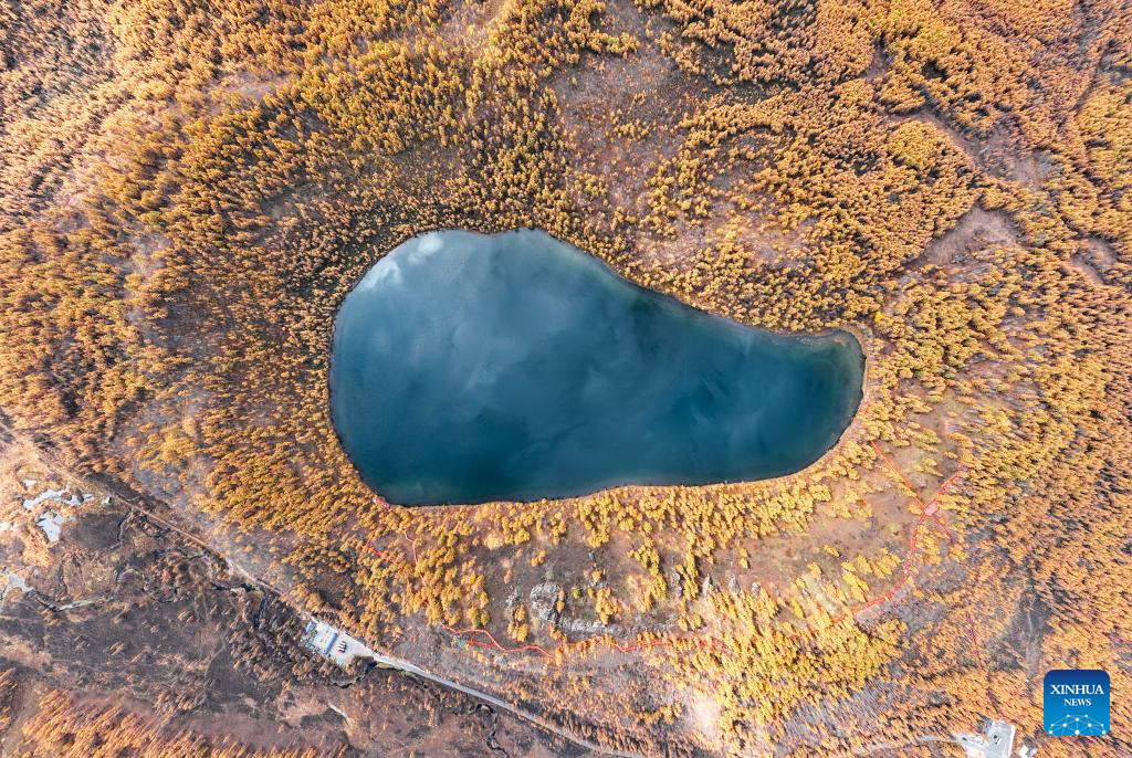 LIGA HINGGAN, 29 septiembre, 2025 (Xinhua) -- Vista aérea tomada con un dron el 29 de septiembre de 2025 del paisaje de otoño del Parque Forestal Nacional Arxan, en Arxan, en la liga Hinggan, en la región autónoma de Mongolia Interior, en el norte de China. (Xinhua/Bei He)