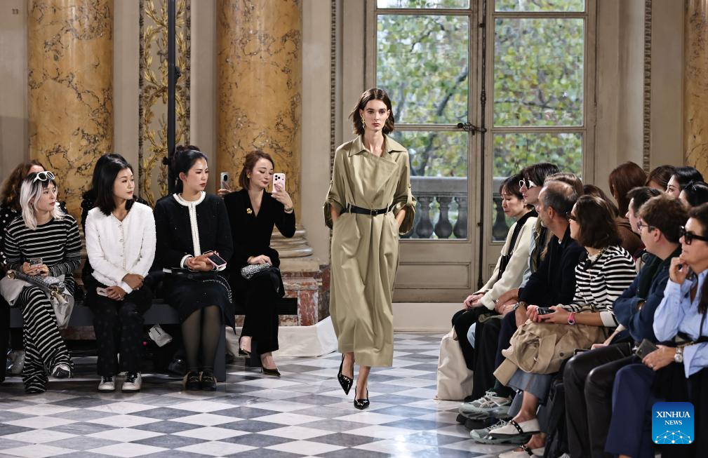 PARIS, 30 septiembre, 2025 (Xinhua) -- Imagen del 29 de septiembre de 2025 de una modelo presentando una creación de las colecciones primavera/verano 2026 de YINER en el evento del Día de la Moda de Shenzhen Futian en París llevado a cabo durante la semana de la moda de París, en París, Francia. (Xinhua/Gao Jing)