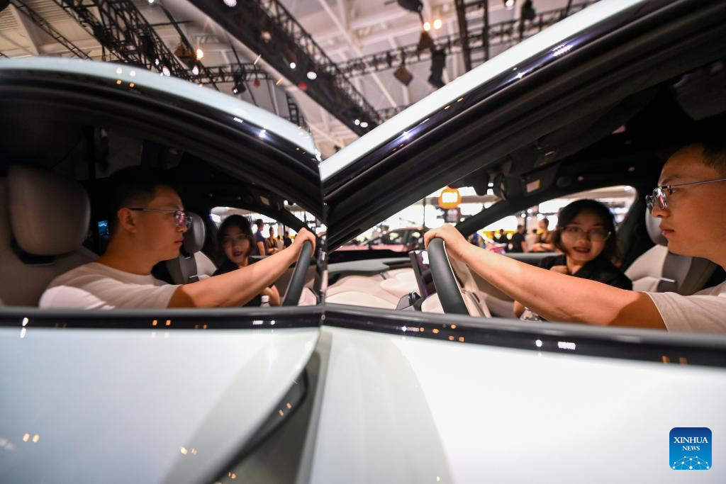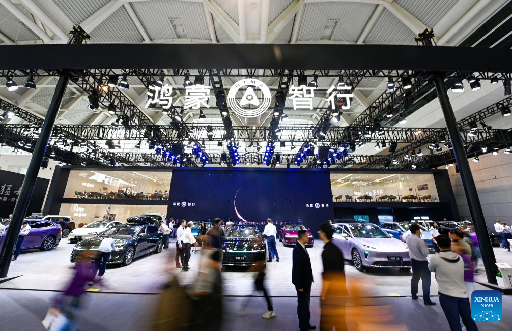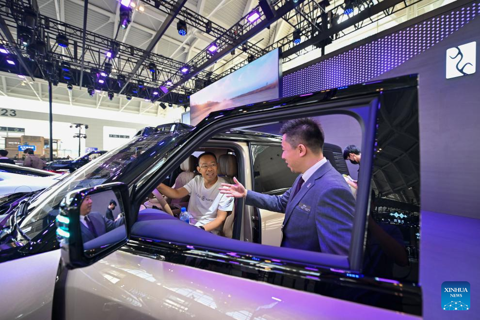 TIANJIN, 30 septiembre, 2025 (Xinhua) -- Personas visitan el estand de HIMA durante el Salón del Automóvil de China (Tianjin) 2025, en Tianjin, en el norte de China, el 30 de septiembre de 2025. Con una superficie total de exposición de 200.000 metros cuadrados, el salón del automóvil muestra 920 vehículos, incluidos 480 vehículos de nueva energía. (Xinhua/Zhao Zishuo)