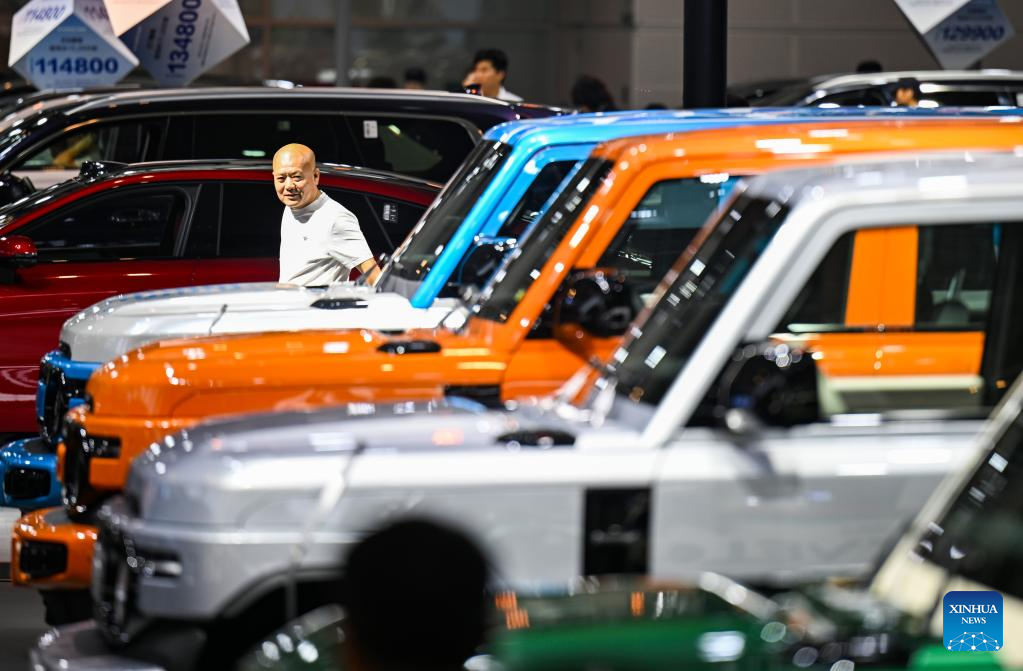 TIANJIN, 30 septiembre, 2025 (Xinhua) -- Personas visitan el estand de iCAR durante el Salón del Automóvil de China (Tianjin) 2025, en Tianjin, en el norte de China, el 30 de septiembre de 2025. Con una superficie total de exposición de 200.000 metros cuadrados, el salón del automóvil muestra 920 vehículos, incluidos 480 vehículos de nueva energía. (Xinhua/Zhao Zishuo)