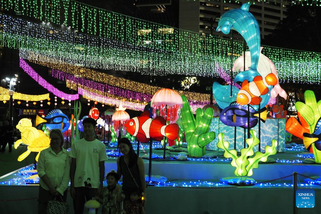 HONG KONG, 30 septiembre, 2025 (Xinhua) -- Personas visitan una feria de linternas que marca la llegada del Festival de Medio Otoño y el Día Nacional en el Parque Victoria, en Hong Kong, en el sur de China, el 30 de septiembre de 2025. (Xinhua/Wang Shen)