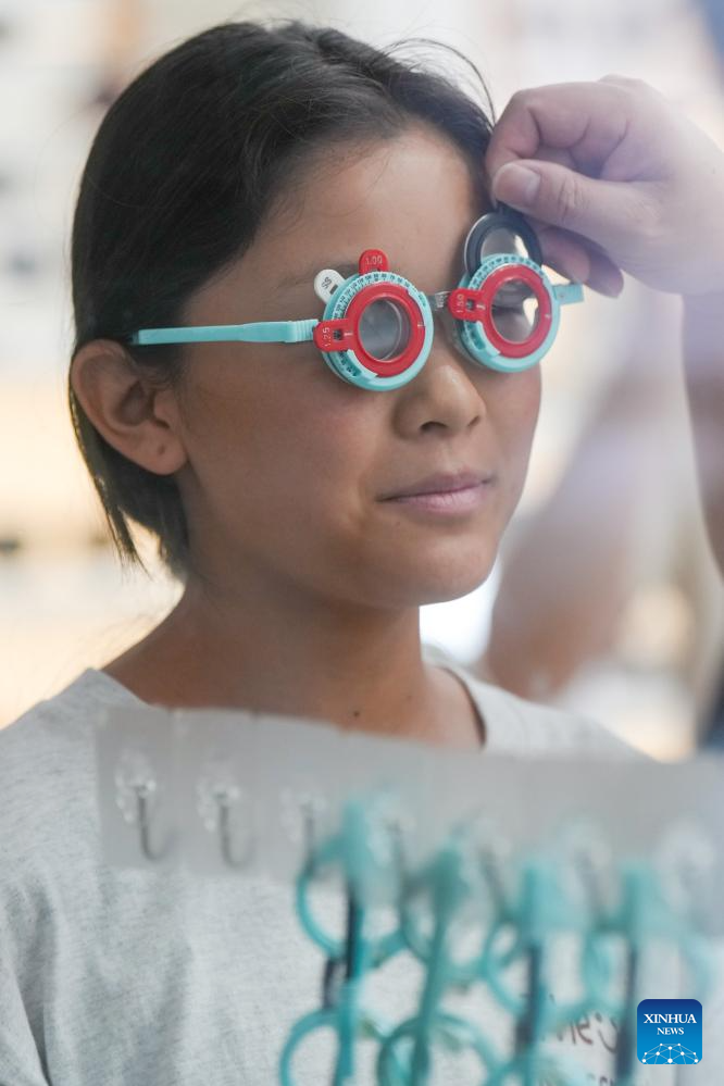 NANJING, 3 octubre, 2025 (Xinhua) -- Imagen del 2 de octubre de 2025 de una niña recibiendo un examen de la vista para la adaptación de anteojos en el Centro Optico Internacional de Danyang, en Danyang, en la provincia de Jiangsu, en el este de China. Danyang ha sido bautizada como la "ciudad de los anteojos" de China, ya que cuenta con más de 1.600 empresas y más de 50.000 personas dedicadas a la industria de las gafas. (Xinhua/Li Bo)