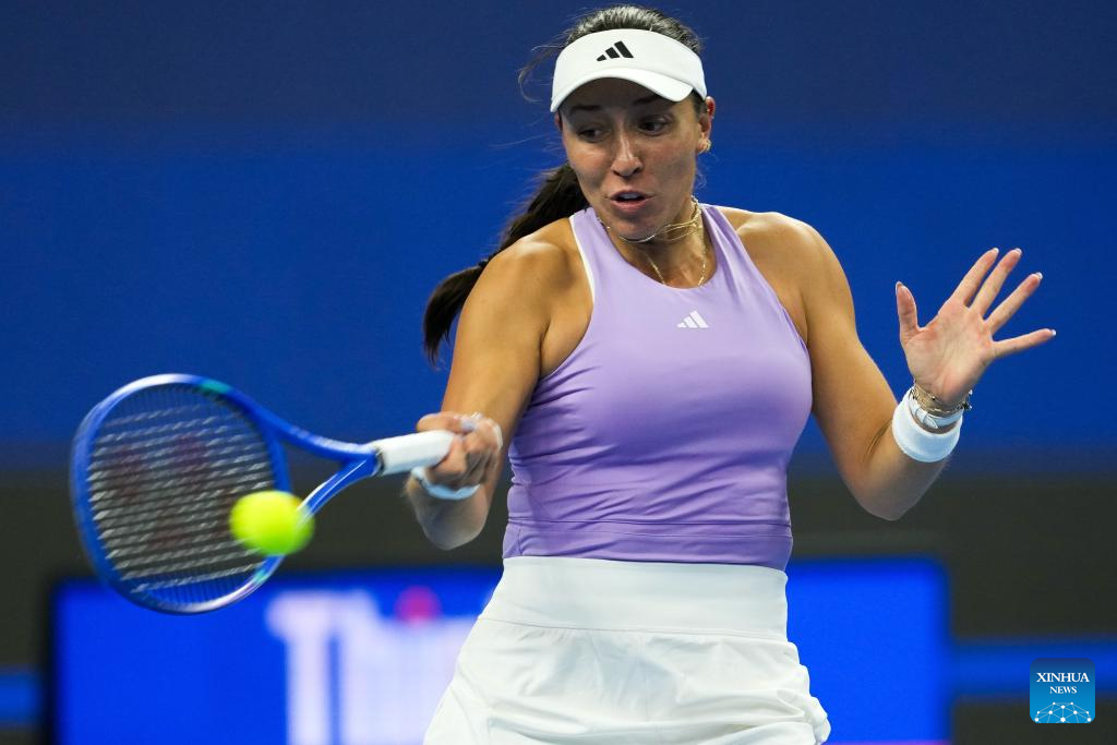 BEIJING, 4 octubre de 2025 (Xinhua) -- Jessica Pegula devuelve la pelota durante el partido de semifinales de individuales femeninos entre Linda Noskova, de la República Checa, y Jessica Pegula, de Estados Unidos, en el torneo de tenis China Open 2025, en Beijing, China, el 4 de octubre de 2025. (Xinhua/Na Yuqi)