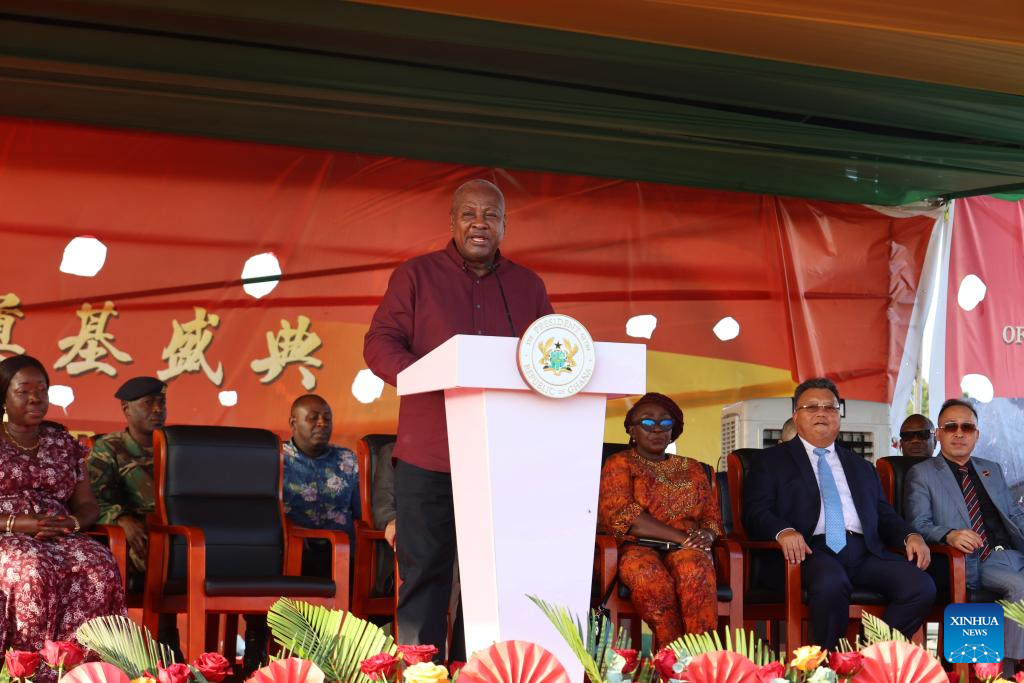 ACRA, 5 octubre, 2025 (Xinhua) -- Imagen del 4 de octubre de 2025 del presidente de Ghana, John Dramani Mahama, hablando durante una ceremonia de colocación de primera piedra para el comienzo del Parque de Atracciones Internacional Bright, en Afienya, en la Región de Gran Acra, en Ghana. Una ceremonia de colocación de la primera piedra de un parque de atracciones ultramoderno construido por Greenhouse International Development Group, una empresa china, se celebró el sábado en Afienya, cerca de la ciudad portuaria de Tema, en Ghana. (Xinhua/Seth)