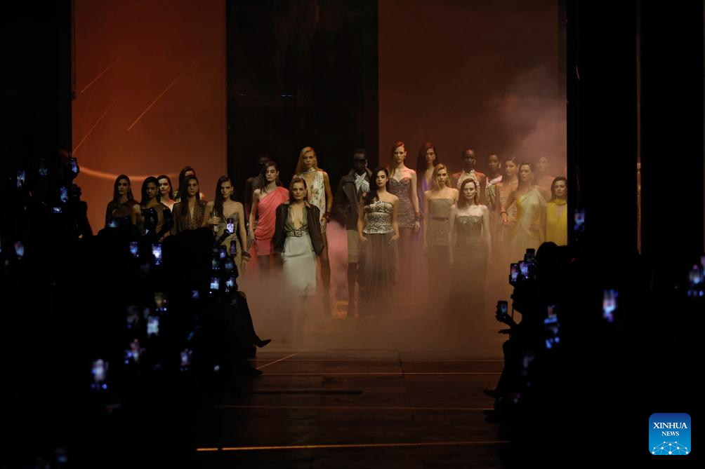 PARIS, 5 octubre, 2025 (Xinhua) -- Imagen del 4 de octubre de 2025 de modelos presentando creaciones de las colecciones listas para usar Primavera/Verano 2026 de Elie Saab durante la Semana de la Moda de París, en París, Francia. (Xinhua/MeetEurope)