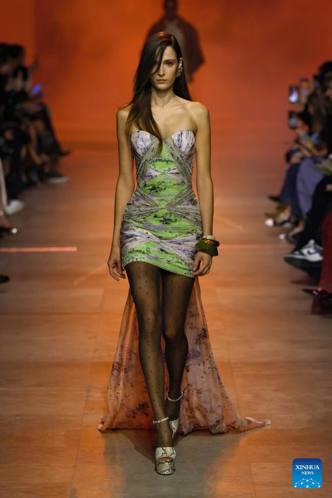 PARIS, 5 octubre, 2025 (Xinhua) -- Imagen del 4 de octubre de 2025 de una modelo presentando una creación de las colecciones listas para usar Primavera/Verano 2026 de Elie Saab durante la Semana de la Moda de París, en París, Francia. (Xinhua/MeetEurope)