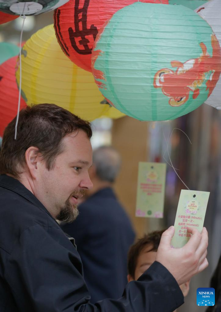 RICHMOND, 5 octubre, 2025 (Xinhua) -- Imagen del 4 de octubre de 2025 de personas participando en juegos de acertijos durante la celebración del Festival del Medio Otoño en un centro comercial, en Richmond, Columbia Británica, Canadá. (Xinhua/Liang Sen)