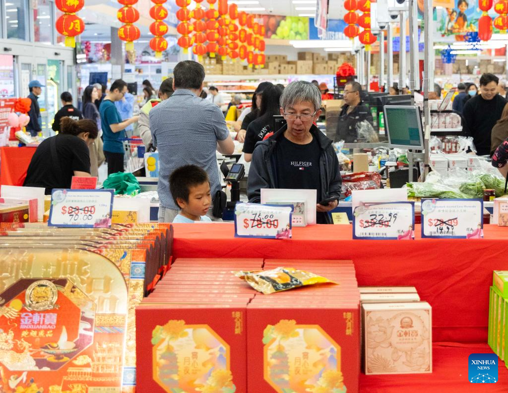 TORONTO, 5 octubre, 2025 (Xinhua) -- Imagen del 4 de octubre de 2025 de clientes comprando pasteles de luna previo al Festival del Medio Otoño en un supermercado, en Toronto, Canadá. El Festival del Medio Otoño chino se celebra este año el 6 de octubre. (Xinhua/Zou Zheng)