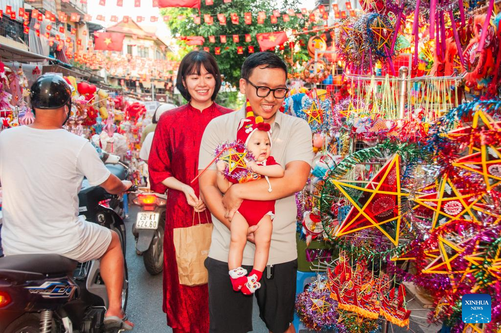 HANOI, 5 octubre, 2025 (Xinhua) -- Imagen del 3 de octubre de 2025 de visitantes comprando artículos para el Festival del Medio Otoño en la calle Hang Ma, en Hanoi, Vietnam. A medida que se acerca el Festival del Medio Otoño, el Barrio Antiguo de Hanoi brilla bajo la cálida luz de los faroles, con familias y visitantes llenando la calle Hang Ma para celebrar una de las fiestas tradicionales más apreciadas de Vietnam. (Xinhua/Dang Hong Dung)