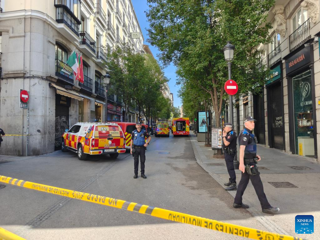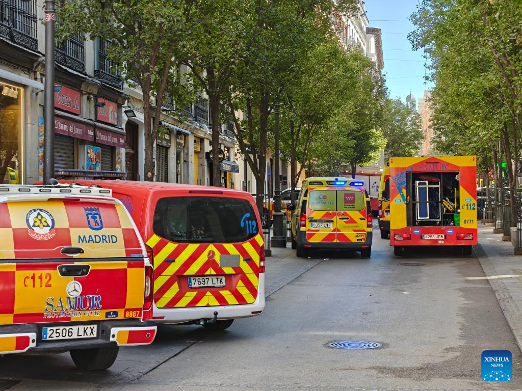 MADRID, 7 octubre, 2025 (Xinhua) -- Imagen tomada con un teléfono móvil el 7 de octubre de 2025 de una escena vista en el sitio del colapso de un edificio, en Madrid, España. Un edificio en renovación colapsó parcialmente el martes en el centro de Madrid, dejando al menos tres heridos y cuatro desaparecidos, informaron las autoridades. (Xinhua/Zhang Yuheng)