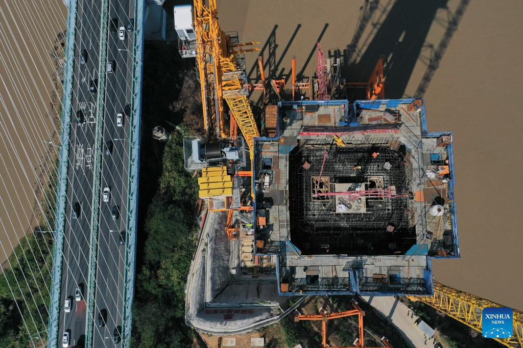 ZHOUSHAN, 7 octubre, 2025 (Xinhua) -- Vista aérea tomada con un dron el 6 de octubre de 2025 del sitio de construcción del puente carretero-ferroviario de Taoyaomen, en Zhoushan, en la provincia de Zhejiang, en el este de China. Una torre principal del puente carretero-ferroviario de Taoyaomen, construido por China Railway Major Bridge Engineering Group Co., Ltd., fue cerrada con éxito el lunes, lo que supone un avance significativo de este proyecto. (Xinhua/Huang Zongzhi)