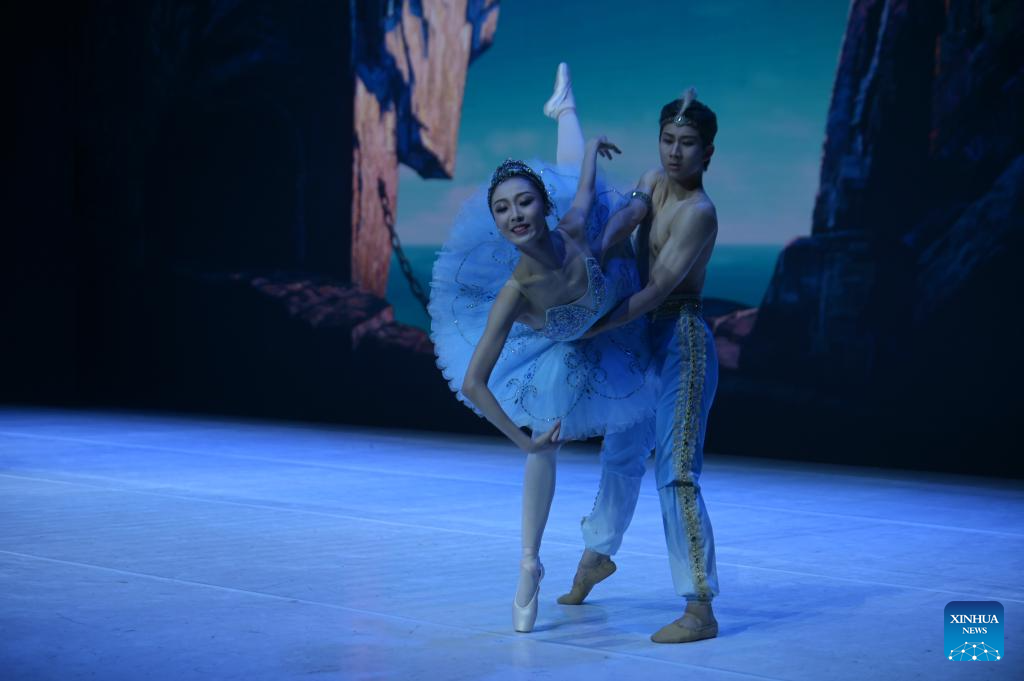 BRASILIA, 7 octubre, 2025 (Xinhua) -- Imagen del 6 de octubre de 2025 de integrantes del Ballet Nacional de China realizando una presentación, en la Sala Martins Pena del Teatro Nacional, en Brasilia, Brasil. (Xinhua/Lucio Tavora)