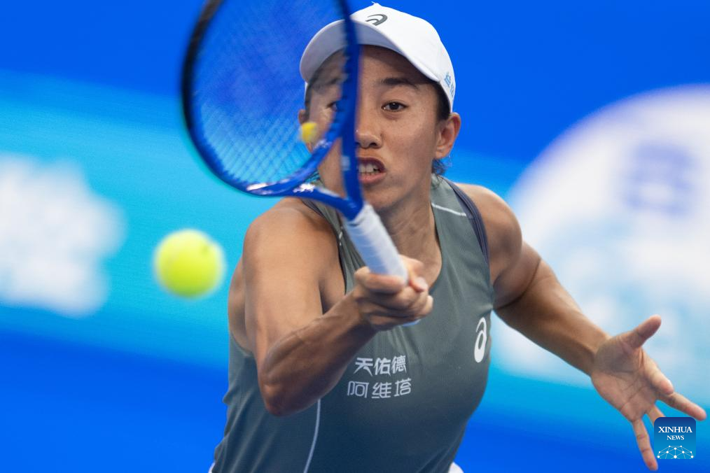 WUHAN, 7 octubre, 2025 (Xinhua) -- Zhang Shuai, de China, devuelve la pelota durante el partido de treintaidosavos de individuales femeninos ante Emma Navarro, de Estados Unidos, en el torneo de tenis Wuhan Open 2025, en Wuhan, en la provincia de Hubei, en el centro de China, el 7 de octubre de 2025. (Xinhua/Xiao Yijiu)