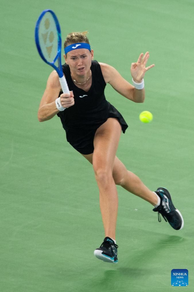 WUHAN, 7 octubre, 2025 (Xinhua) -- Marie Bouzkova, de República Checa, devuelve la pelota durante el partido de dieciseisavos de final de individuales femeninos ante Iga Swiatek, de Polonia, en el torneo de tenis Wuhan Open 2025, en Wuhan, en la provincia de Hubei, en el centro de China, el 7 de octubre de 2025. (Xinhua/Xiao Yijiu)