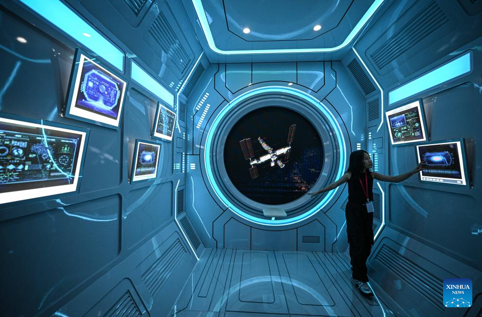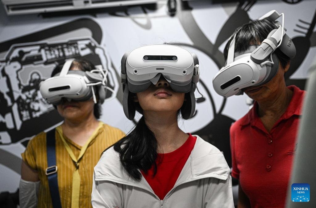 WENCHANG, 7 octubre, 2025 (Xinhua) -- Personas experimentan tecnologías de Realidad Mixta en el Centro de Ciencia y Educación Aeroespacial de Wenchang, en Wenchang, en la provincia de Hainan, en el sur de China, el 7 de octubre de 2025. En preparación para su inauguración oficial, el centro está abierto al público de forma gratuita por tiempo limitado, lo que permite a los visitantes experimentar su funcionamiento y servicios de primera mano. (Xinhua/Pu Xiaoxu)
