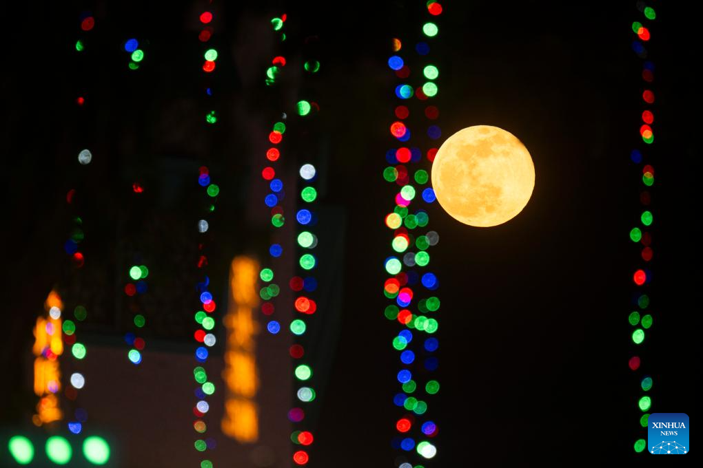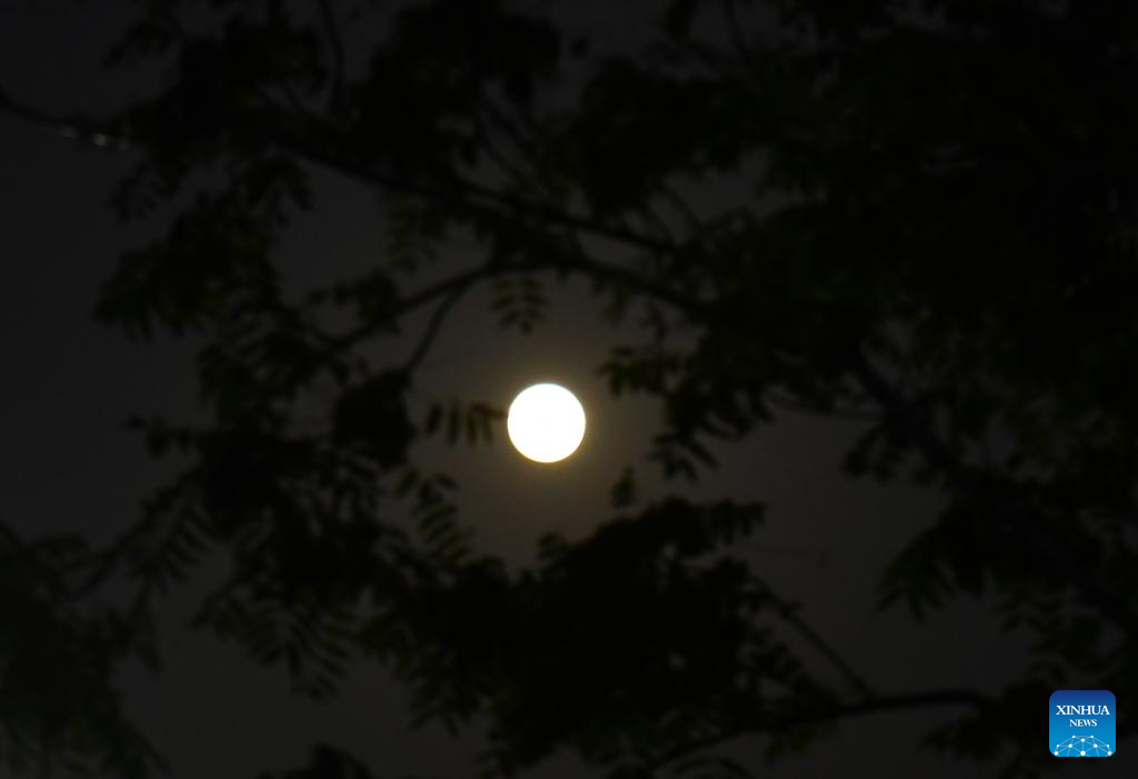 YANGON, 7 octubre, 2025 (Xinhua) -- La luna llena es vista en Yangon, Myanmar, el 7 de octubre de 2025. (Xinhua/Myo Kyaw Soe)
