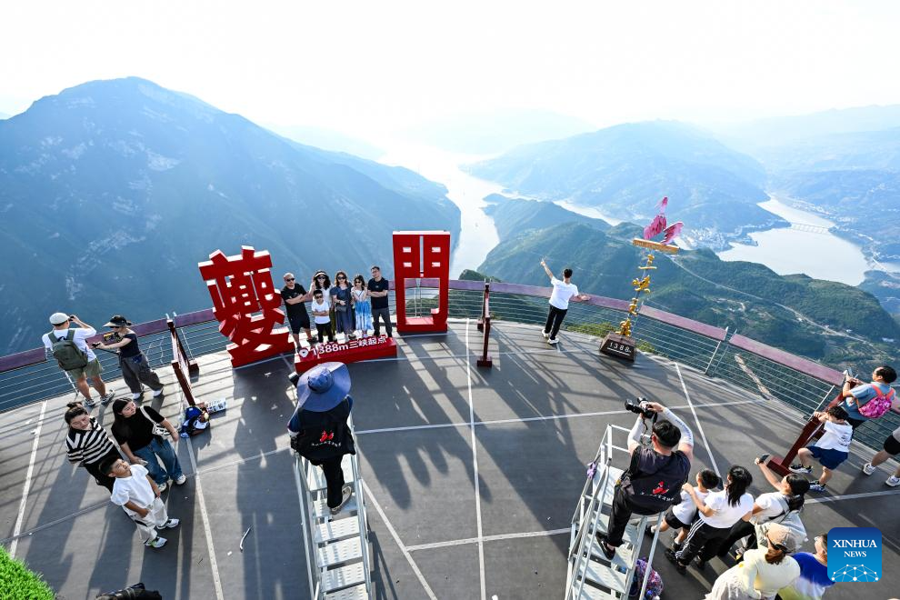 Imagen del 5 de octubre de 2025 de personas visitando un punto escénico, en el distrito de Fengjie, en Chongqing, en el suroeste de China. China registró 888 millones de viajes turísticos dentro del territorio nacional durante los ocho días de vacaciones con motivo del Día Nacional y el Festival del Medio Otoño, lo que constituye un aumento de 123 millones frente a las vacaciones de siete días del Día Nacional en 2024, informó hoy jueves el Ministerio de Cultura y Turismo. (Xinhua/Chen Yehua)