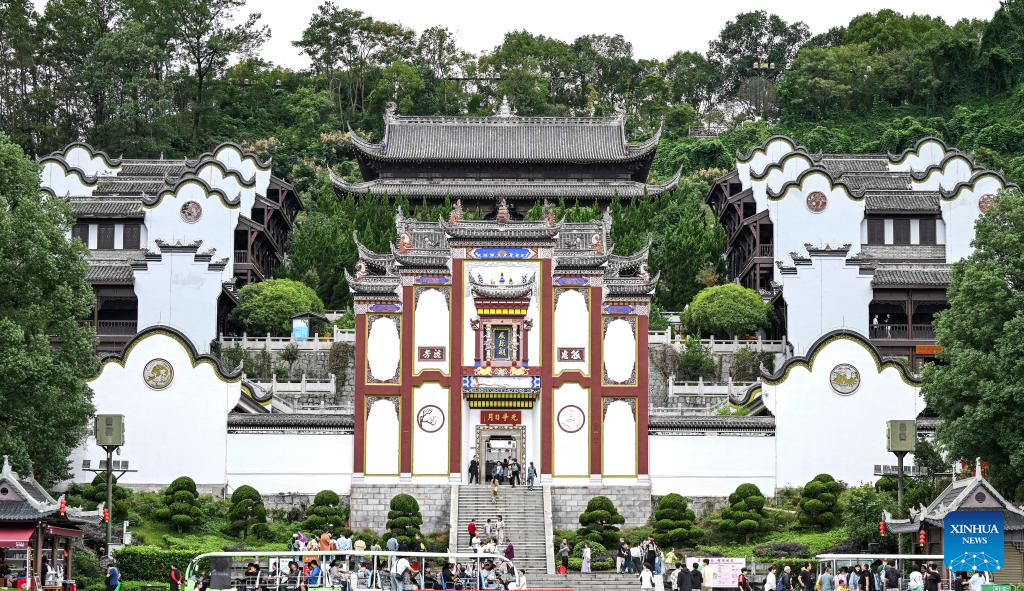 Imagen del 3 de octubre de 2025 de personas visitando el Templo Qu Yuan, que conmemora un poeta patriótico de la antigua China, en el distrito de Zigui de la ciudad de Yichang, en la provincia de Hubei, en el centro de China. China registró 888 millones de viajes turísticos dentro del territorio nacional durante los ocho días de vacaciones con motivo del Día Nacional y el Festival del Medio Otoño, lo que constituye un aumento de 123 millones frente a las vacaciones de siete días del Día Nacional en 2024, informó hoy jueves el Ministerio de Cultura y Turismo. (Xinhua/Chen Yehua)