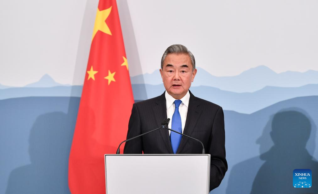BELLINZONA, Suiza, 11 oct (Xinhua) -- El ministro de Relaciones Exteriores chino, Wang Yi, expuso el viernes, en la ciudad suiza de Bellinzona, la posición de China sobre la primera fase del acuerdo de alto el fuego e intercambio de prisioneros alcanzado entre Israel y Hamás, durante una rueda de prensa conjunta con el consejero federal y ministro de Exteriores de Suiza, Ignazio Cassis.