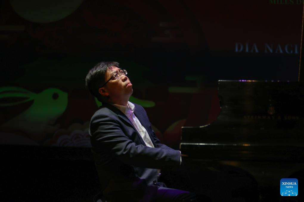 CIUDAD DE MEXICO, 12 octubre, 2025 (Xinhua) -- Imagen del 11 de octubre de 2025 del pianista Ding Yang realizando una presentación durante la gala "Bajo la misma luna: Concierto del Festival de Medio Otoño" en el Centro Nacional de las Artes, en la Ciudad de México, capital de México. Entre melodías, colores y símbolos de luna llena, México celebró el sábado el Festival de Medio Otoño de China con un emotivo concierto de gala que reflejó la belleza y espiritualidad de una de las festividades más importantes del pueblo chino. (Xinhua/Alejandro Medina)