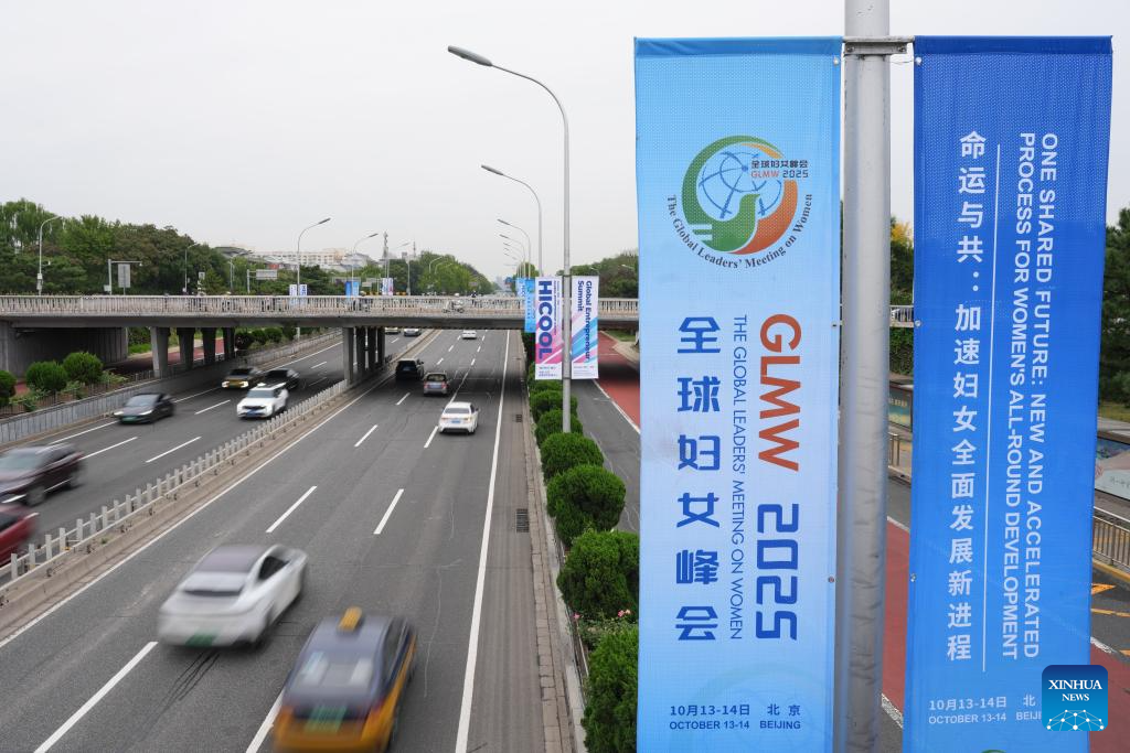 BEIJING, 12 octubre, 2025 (Xinhua) -- Imagen del 11 de octubre de 2025 de carteles callejeros para la Conferencia de Líderes Mundiales sobre la Mujer vistos, en Beijing, capital de China. La Conferencia de Líderes Mundiales sobre la Mujer se llevará a cabo del 13 al 14 de octubre en Beijing. (Xinhua/Ju Huanzong)