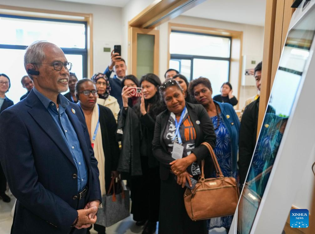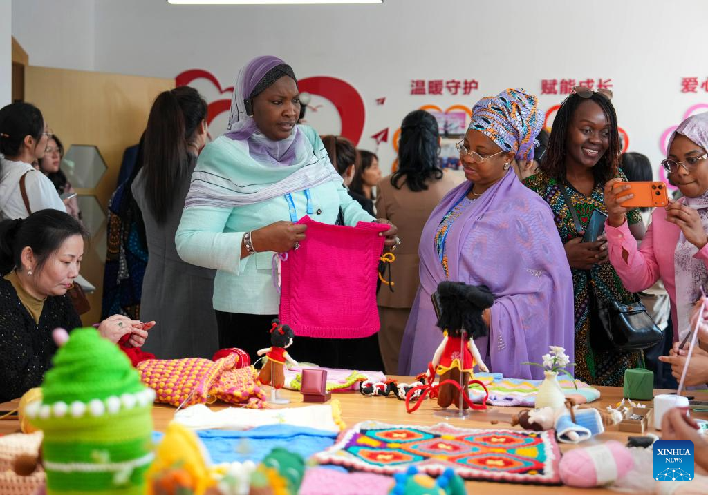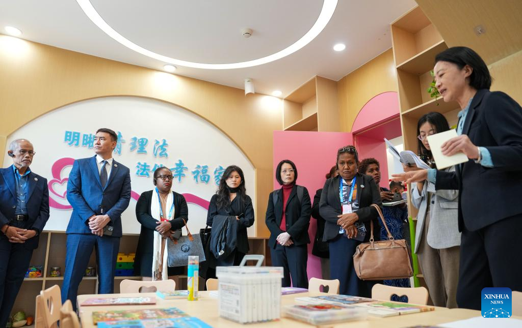 BEIJING, 14 octubre, 2025 (Xinhua) -- Representantes que se encuentran en Beijing para la Conferencia de Líderes Mundiales sobre la Mujer, visitan un centro de servicios sociales para mujeres y niñas, en el distrito de Shunyi, en Beijing, capital de China, el 14 de octubre de 2025. (Xinhua/Yan Linyun)