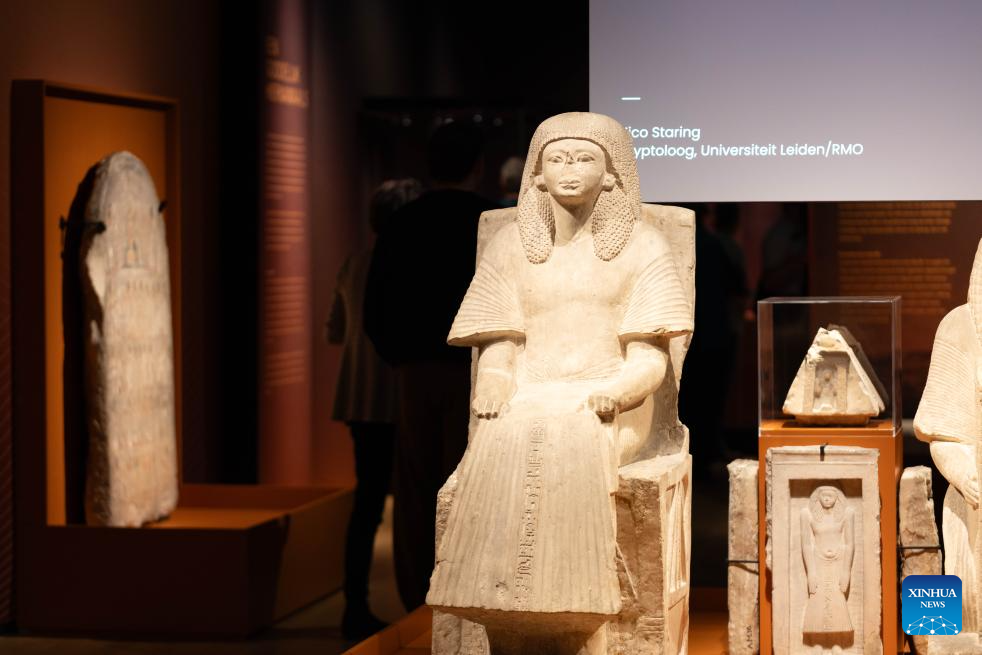 LEIDEN, 16 octubre, 2025 (Xinhua) -- Imagen del 15 de octubre de 2025 de artefactos mostrados durante la vista previa para los medios de comunicación de la exposición "Descubriendo el Antiguo Egipto" en el Museo Nacional de Antigüedades, en Leiden, Países Bajos. La exposición, abierta al público el jueves, muestra la vida del antiguo Egipto a través de 500 artefactos cuidadosamente curados. Durará hasta el 15 de marzo de 2026. (Xinhua/Sylvia Lederer)