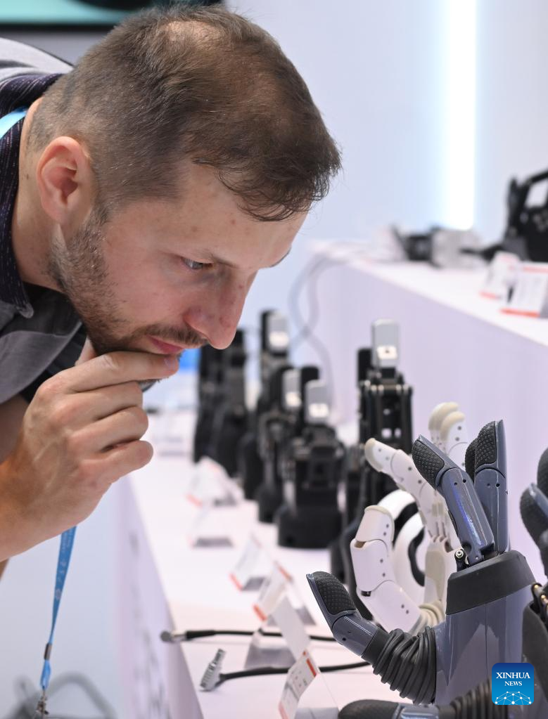 GUANGZHOU, 16 octubre, 2025 (Xinhua) -- Imagen del 15 de octubre de 2025 de un comprador extranjero observando un brazo robótico en la Zona de Robots de Servicio durante la 138ª edición de la Feria de Importación y Exportación de China (Feria de Cantón), en Guangzhou, en la provincia de Guangdong, en el sur de China. La feria destaca la Zona de Robots de Servicio para mostrar innovaciones de vanguardia, como robots humanoides, robots exoesqueleto, robots de patrullaje esféricos, robots de limpieza fotovoltaicos, robots educativos, etc. (Xinhua/Deng Hua)