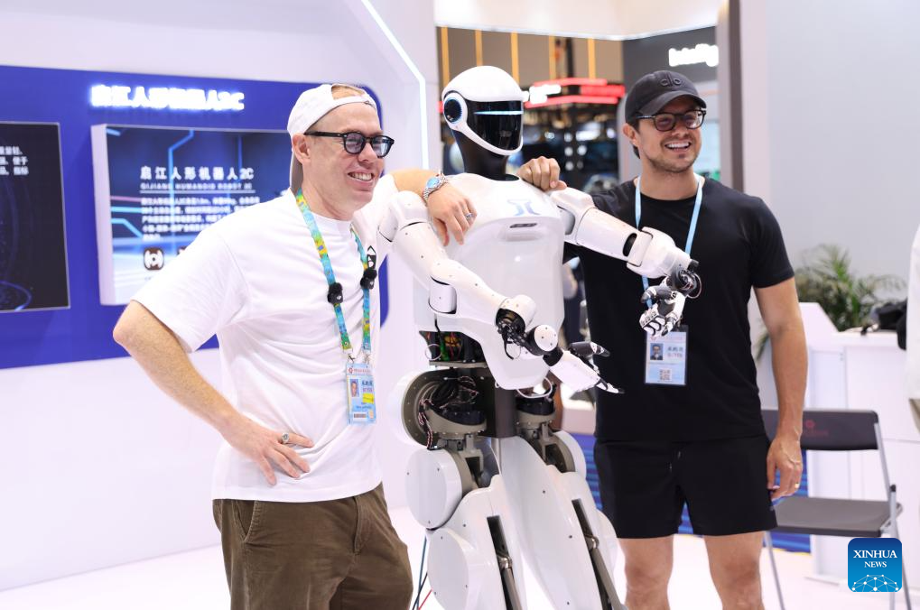 GUANGZHOU, 16 octubre, 2025 (Xinhua) -- Imagen del 15 de octubre de 2025 de compradores extranjeros posando para una fotografía grupal con un robot humanoide en la Zona de Robots de Servicio durante la 138ª edición de la Feria de Importación y Exportación de China (Feria de Cantón), en Guangzhou, en la provincia de Guangdong, en el sur de China. La feria destaca la Zona de Robots de Servicio para mostrar innovaciones de vanguardia, como robots humanoides, robots exoesqueleto, robots de patrullaje esféricos, robots de limpieza fotovoltaicos, robots educativos, etc. (Xinhua/Lu Hanxin)