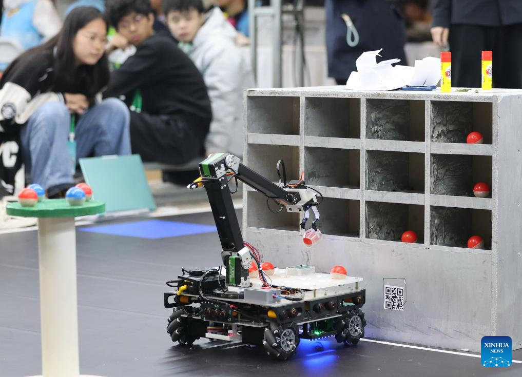 SHIJIAZHUANG, 17 octubre, 2025 (Xinhua) -- Un robot clasificador compite durante un juego en el Centro Internacional de Convenciones y Exposiciones, en Shijiazhuang, en la provincia de Hebei, en el norte de China, el 17 de octubre de 2025. La Competencia de Robots de China 2025 y el RoboCup China Open se celebran aquí desde el viernes hasta el domingo. (Xinhua/Yang Shiyao)