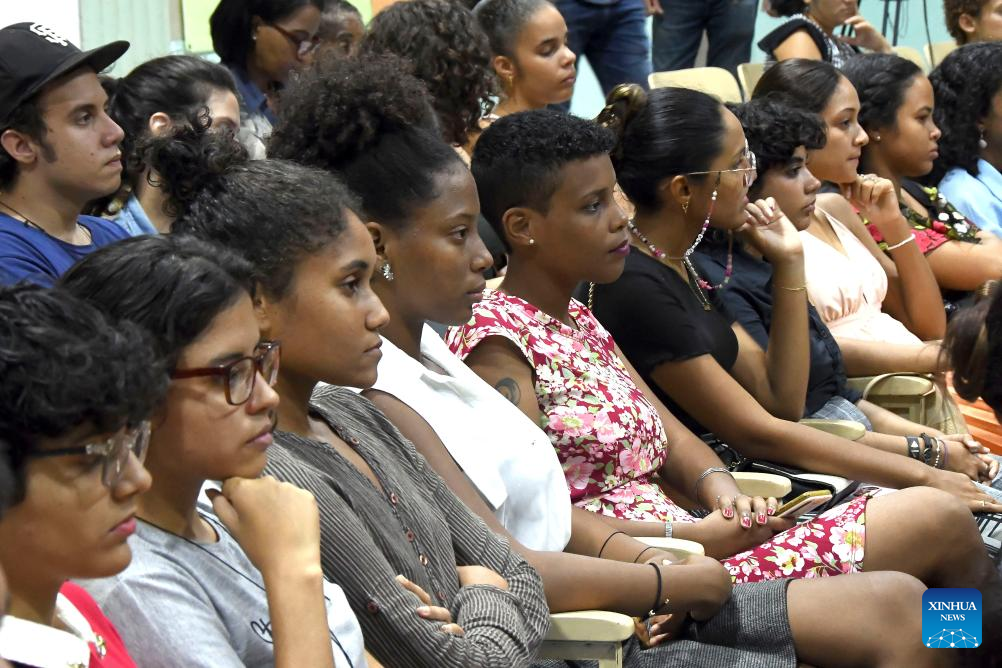 Imagen del 17 de octubre de 2025 de estudiantes universitarios participando en una Jornada Conmemorativa China-Cuba, como parte del programa de actividades por el 65º aniversario del establecimiento de relaciones diplomáticas entre ambas naciones, en La Habana, capital de Cuba. Las relaciones entre China y Cuba, sus bases históricas y los vínculos de cooperación en múltiples áreas, fueron analizados el viernes en la Universidad de La Habana. (Xinhua/Joaquín Hernández)