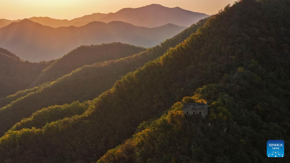 BEIJING, 18 octubre, 2025 (Xinhua) -- Imagen tomada con un dron del paisaje otoñal de la Gran Muralla de Qingshanguan, en el poblado de Shangying, en el condado de Qianxi, en la ciudad de Tangshan, en la provincia de Hebei, en el norte de China, el 18 de octubre de 2025. (Xinhua/Liu Mancang)