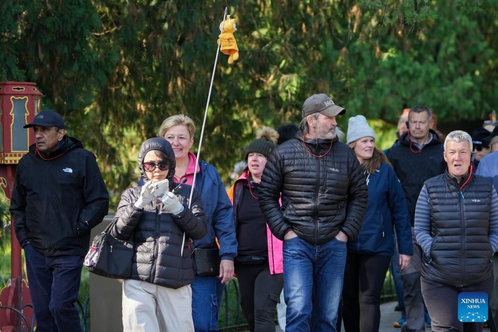 BEIJING, 18 octubre, 2025 (Xinhua) -- Extranjeros portan chaquetas de plumas mientras visitan el Templo del Cielo, en Beijing, capital de China, el 18 de octubre de 2025. Afectada por un fuerte aire frío, Beijing se ve afectada por una ola de frío. (Xinhua/Ju Huanzong)