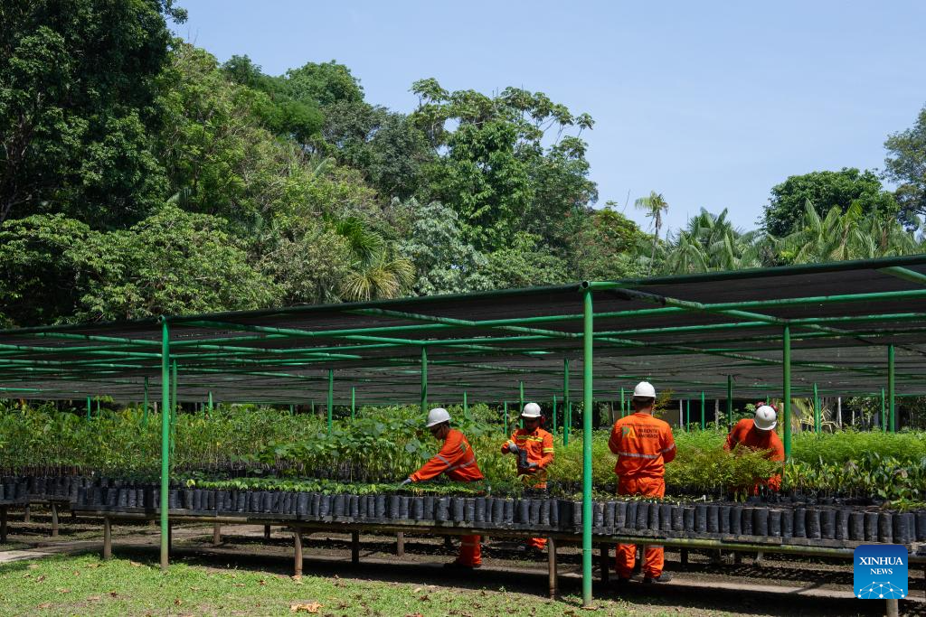 AMAZONAS, 19 octubre, 2025 (Xinhua) -- Imagen del 17 de octubre de 2025 de trabajadores cultivando semillas de selva tropical en el Campo de Producción de Petróleo y Gas de Urucu, en el estado de Amazonas, Brasil. El Campo de Producción de Petróleo y Gas de Urucu, localizado en el corazón del estado brasileño de Amazonas, es una de las bases de producción de petróleo y gas en tierra firme más importantes del país. Rodeado de selva tropical virgen, ha funcionado de manera constante desde su puesta en marcha en 1988, suministrando petróleo y gas natural que satisfacen las necesidades energéticas del norte de Brasil. Según su operador, Petrobras, el yacimiento ha conservado alrededor del 98 por ciento de su superficie como bosque nativo. Se han implementado programas de reciclaje de agua de lluvia, recuperación de residuos y reforestación, plantando más de 1,5 millones de árboles nativos. (Xinhua/Wang Tiancong)