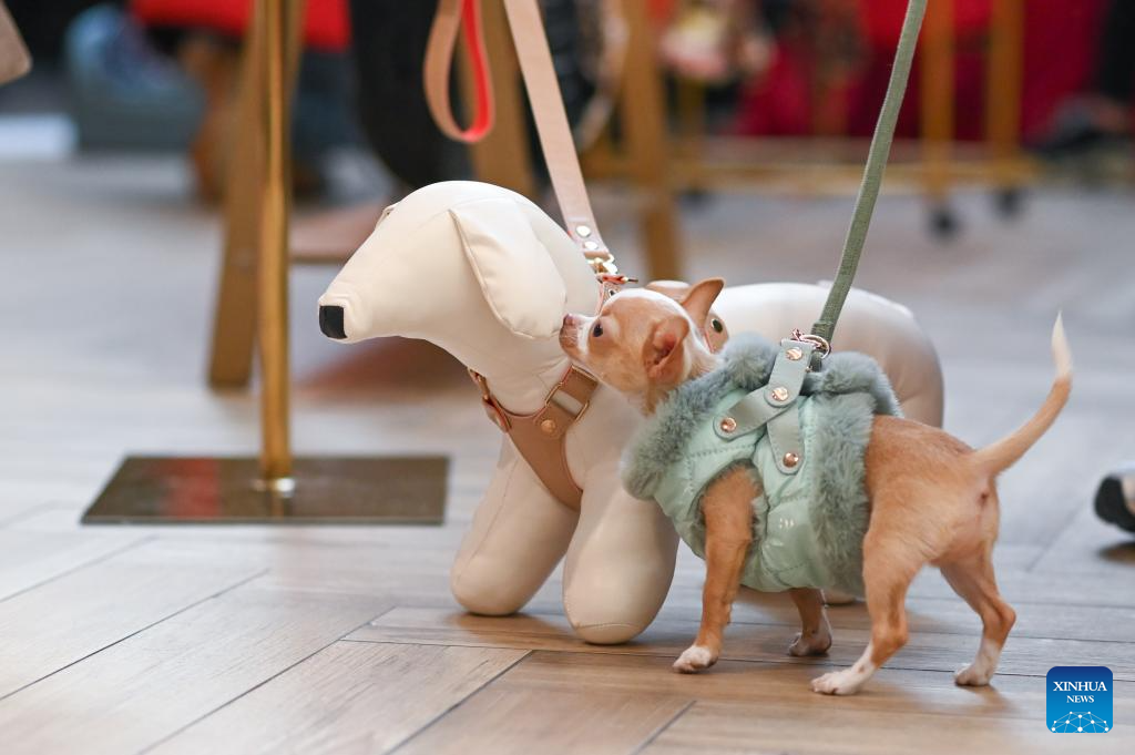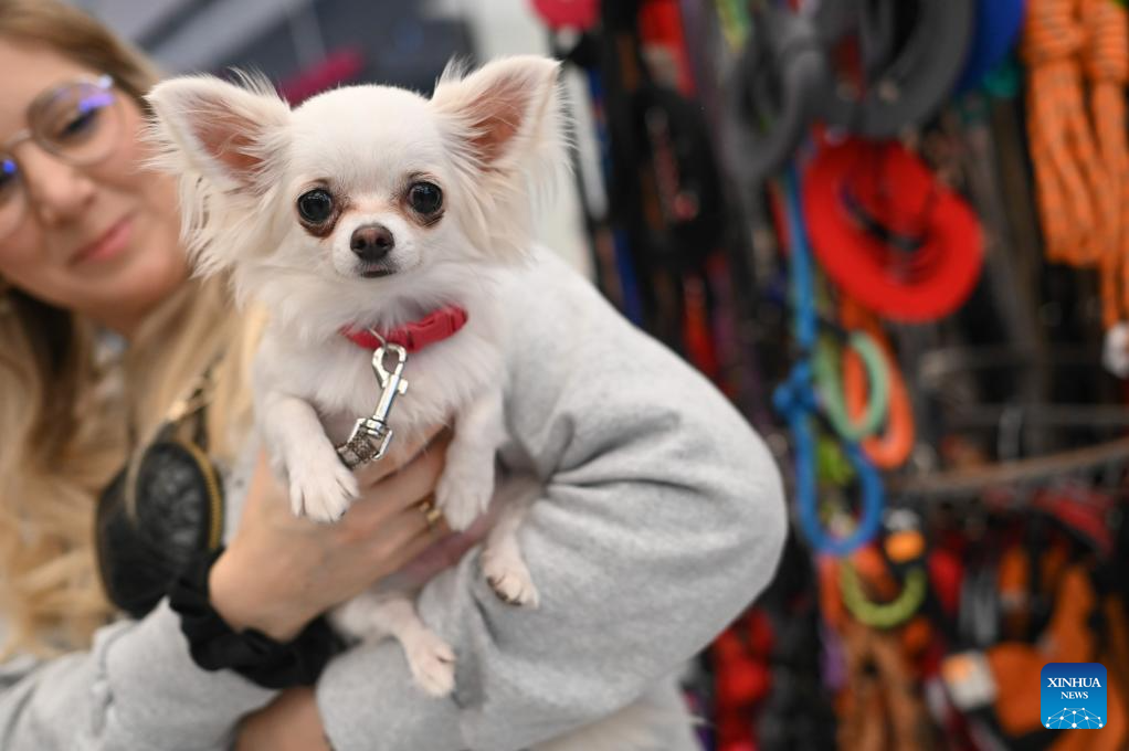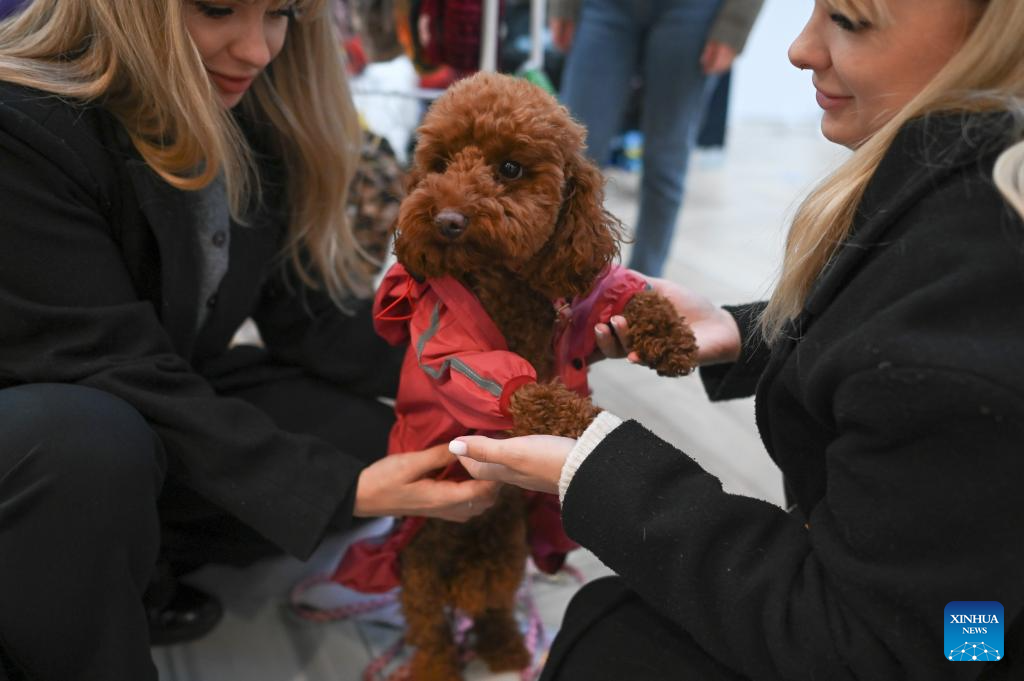 VARSOVIA, 20 octubre, 2025 (Xinhua) -- Imagen del 19 de octubre de 2025 de un perro visto durante la venta benéfica de productos para mascotas "Pupilove", en Varsovia, Polonia. La venta benéfica, en colaboración con organizaciones locales de protección animal, se celebra periódicamente para apoyar a los refugios de animales de varias ciudades de Polonia. (Xinhua/Aleksy Witwicki)